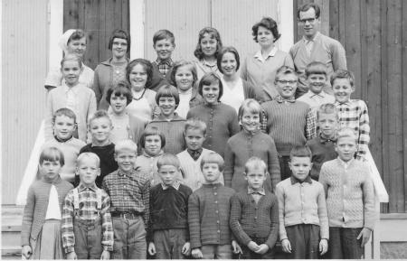 Rad 5: Kokerskan Lisa Ingman (f. Näsman), Marita Sid, Håkan Ingman, Sonja Björk, Lärarinnan Mona Karp, läraren Helmer Karp.