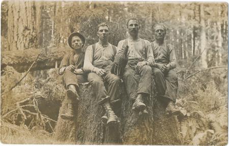 Ämnesord: Förenta staterna, skogsarbetare, timmeravverkningsplatser |