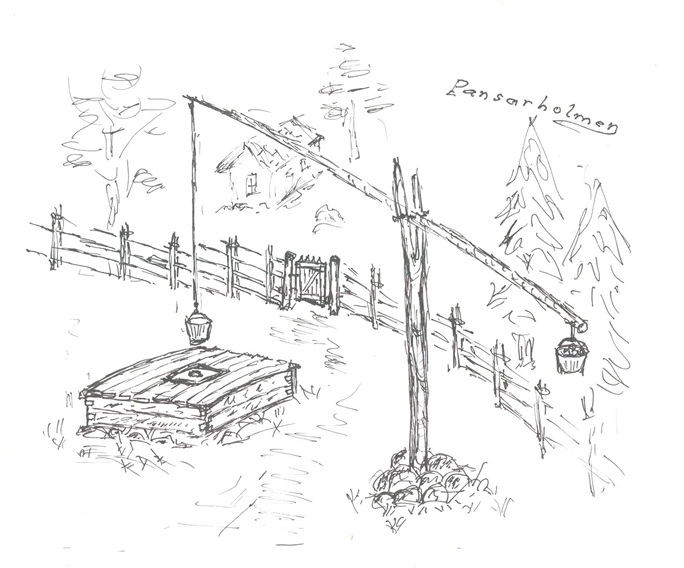 Här på Pansarholmen i Norra Jungsund fanns ännu i början på 1950-talet bara 2 brunnar. Den ena, som vi använde var gemensam för oss och våra grannar här.  Den var gammal, stensatt inuti och jag uppskattar djupet till ca. 5 meter med en timrad överbyggnad (brånnstimbro) och en traditionell brånnsvippo (se bilden ovan!). Den andra hos John och Edith Back på holmens södra sida.