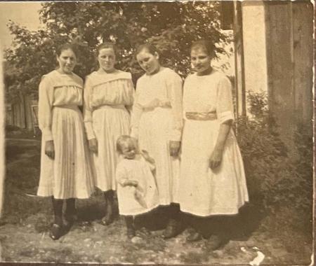 Fyra okända damer och en liten tös